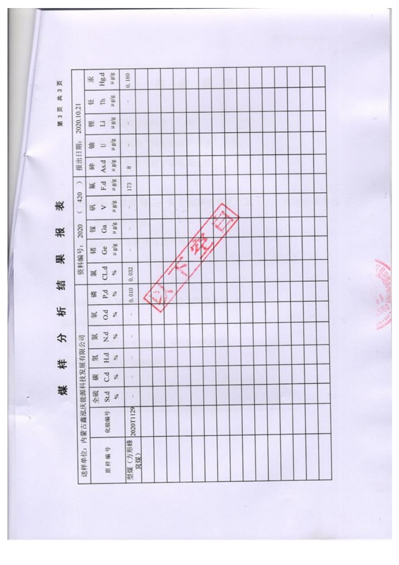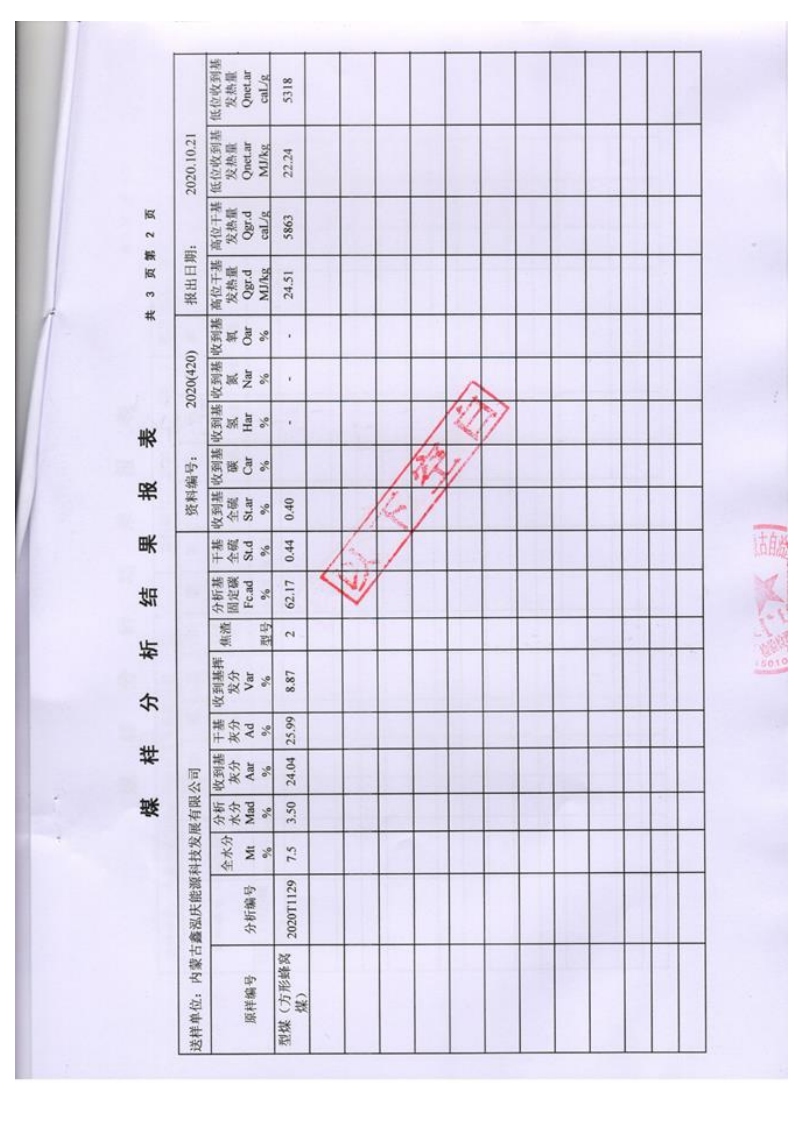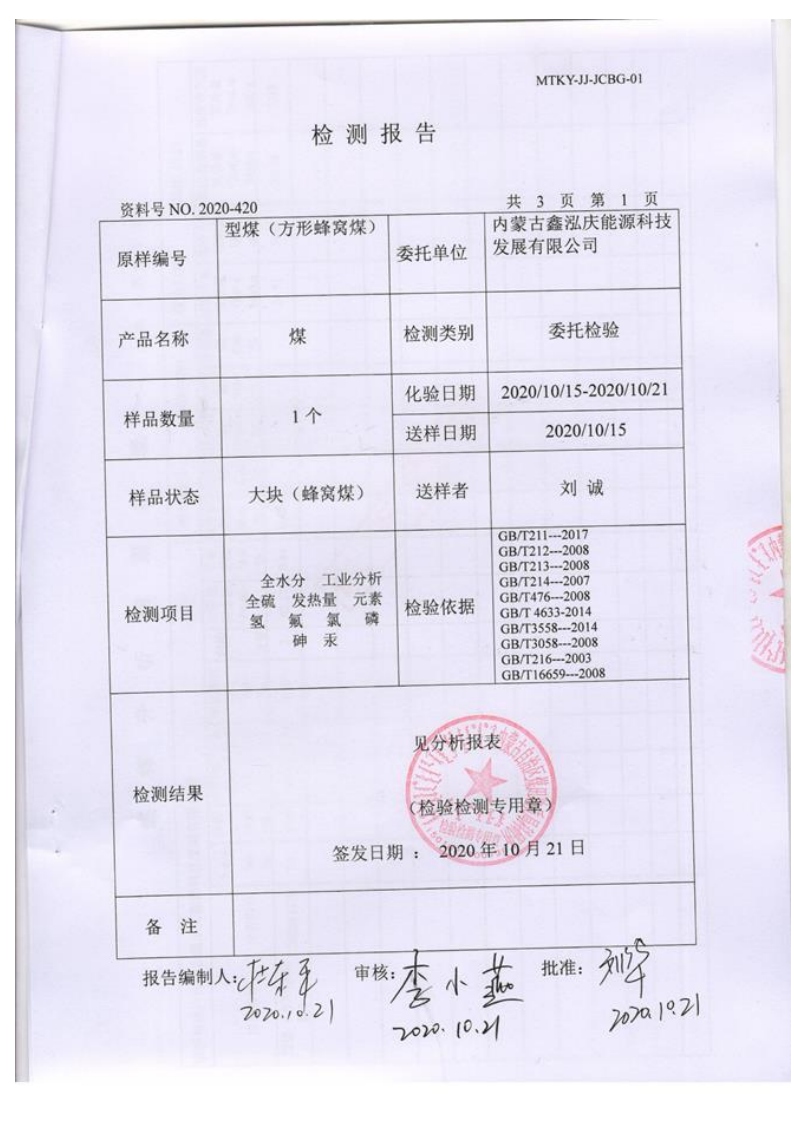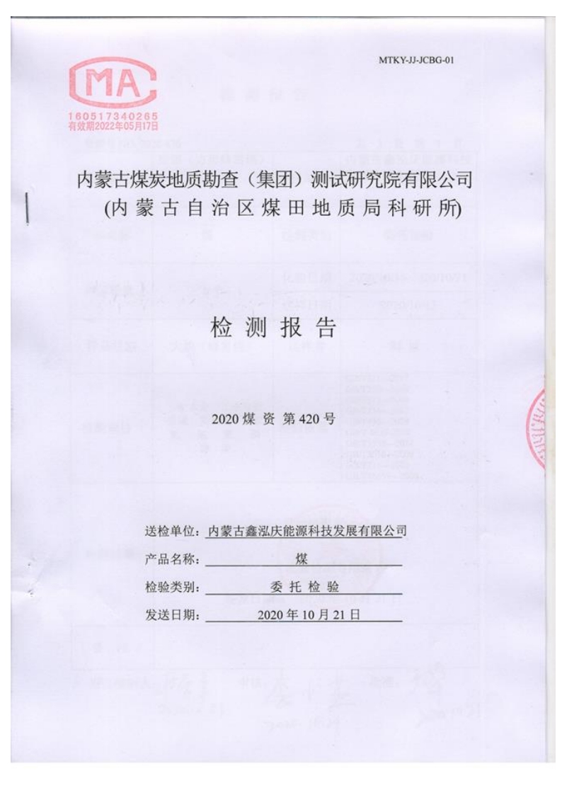 內蒙古地質勘查院煤質檢測報告2020年