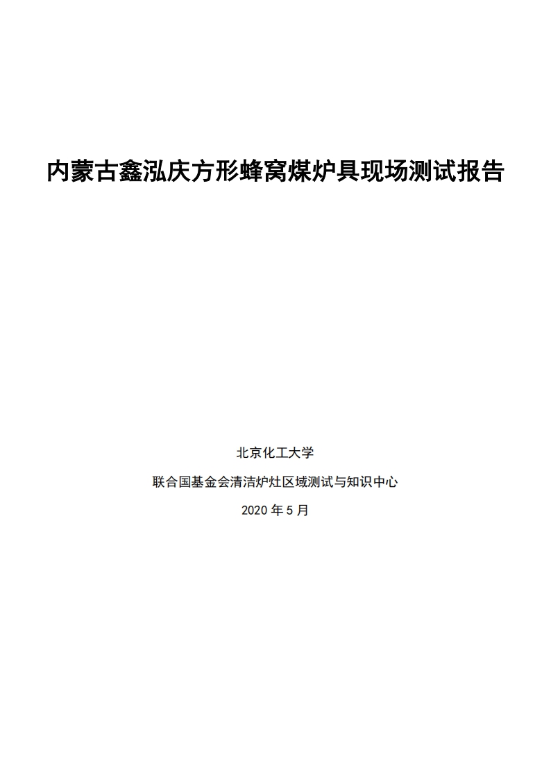 2020年5月北京化工大學、聯合國基金會清潔爐灶區域測試與知識中心-現場測試報告