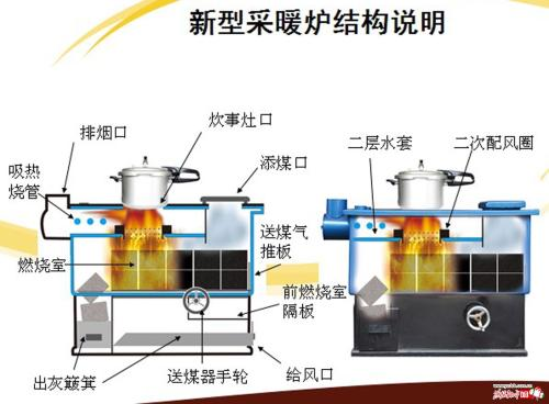 據劉誠介紹,這種新型采暖爐,主要由儲煤區、燃燒室和出灰區組成,同時設置了給風口、送煤手輪、排煙口等裝置。炊事采暖兩用,環保高效、操作方便、性能優異。多層水套及吸熱管設計,極大增加了受熱面積,并形成了良好的內循環;機械式推送結構,操作方便、衛生;使燃料燃燒更充分,封火與升溫更易控制。