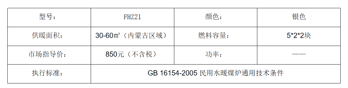 其他信息:供暖面積:30-60㎡ 產(chǎn)品說明:該產(chǎn)品適用人群為臥室采暖,煙路通炕以及煙箱散熱等形式的采暖用戶,該種采暖方式存在一定安全隱患,用戶室內(nèi)務(wù)必安裝一氧化碳報(bào)警器,并且嚴(yán)格遵循安全使用要求,產(chǎn)品采暖特點(diǎn):燃燒時間長、恒溫供熱、污染排放低;